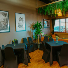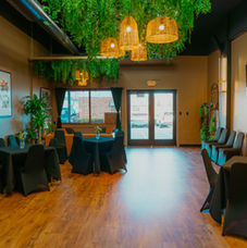 Featuring elegant wood flooring, high ceilings, and a botanical-inspired atmosphere, the space is filled with unique light fixtures and hanging plants, creating a warm and inviting environment. A cozy bar area, a little couch seating area, tables with chairs, and a TV on the wall make it ideal for intimate gatherings or lively social events, while the open layout allows for customization to suit your vision. Whether you’re hosting a tasting, workshop, or private celebration, this space offers the perfect blend of sophistication and versatility.